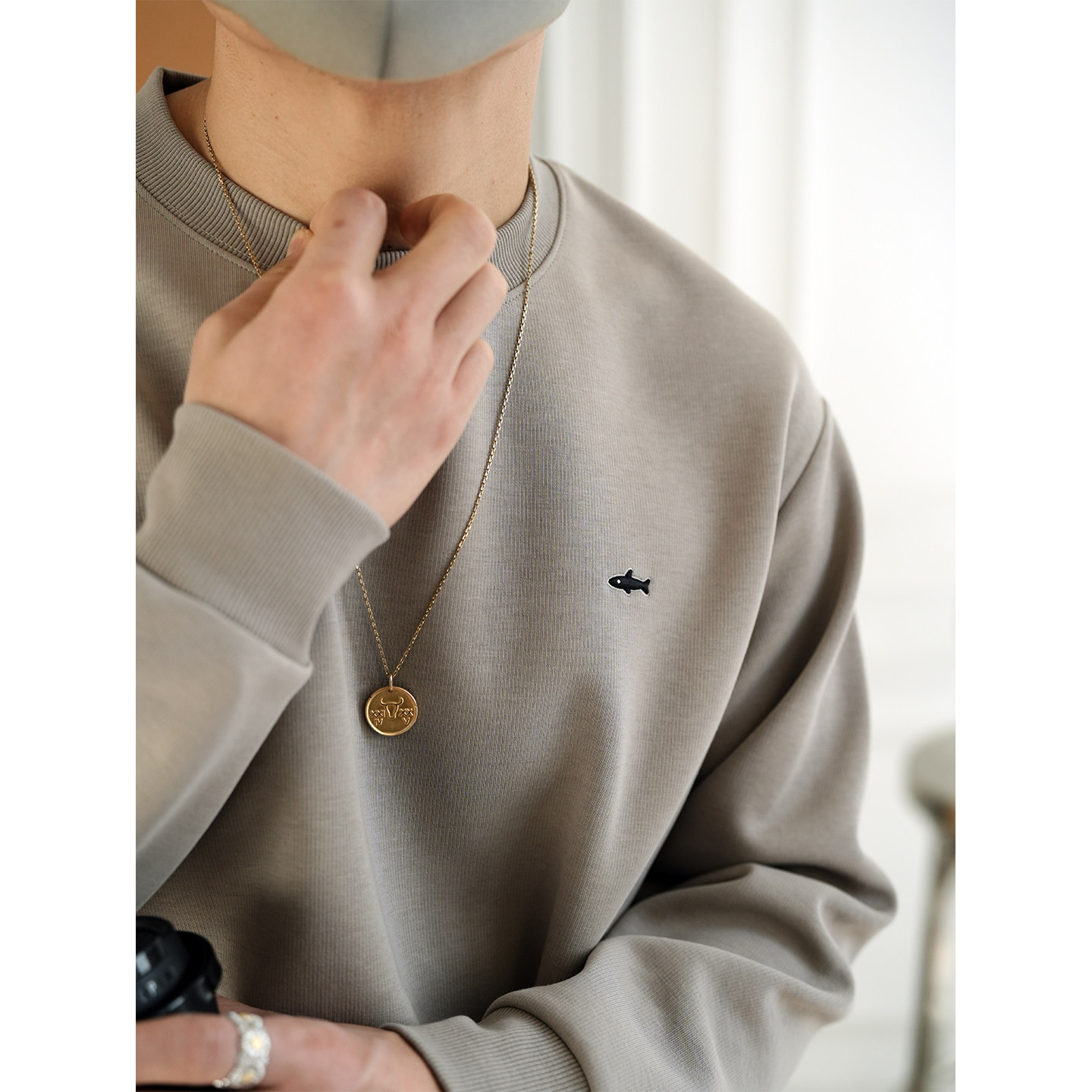 韩版轻奢精工小鱼刺绣圆领针织衫男秋冬潮流新款时尚百搭套头卫衣