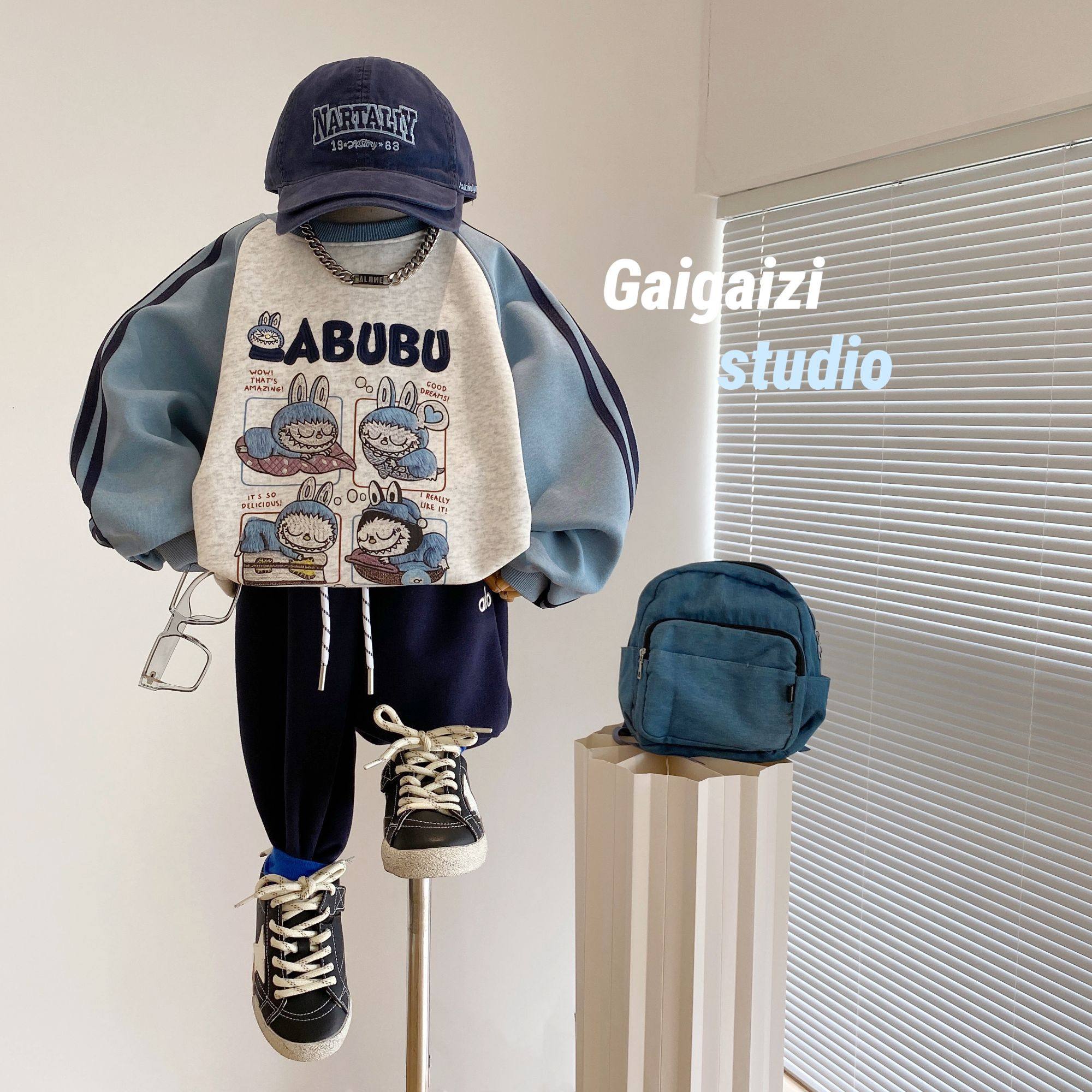 中小儿童韩版宽松圆领卫衣秋冬季男女童卡通印花百搭套头衫上衣服