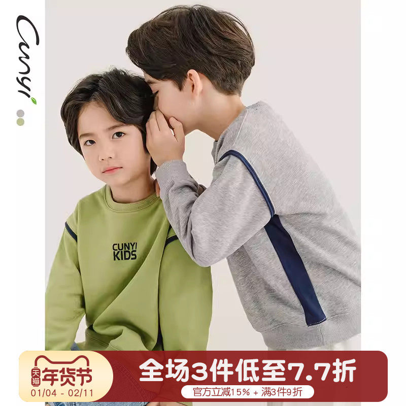 男童简约套头卫衣秋冬2025新款韩版加绒加厚时尚儿童长袖上衣加厚