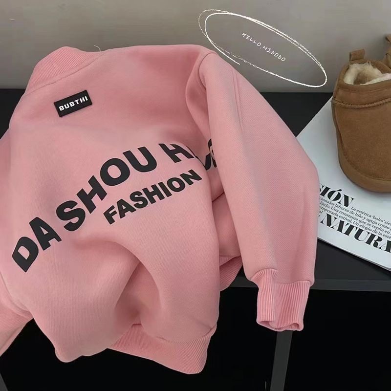大E小e童装 儿童韩版加绒卫衣2025秋冬男女童圆领保暖套头衫2525