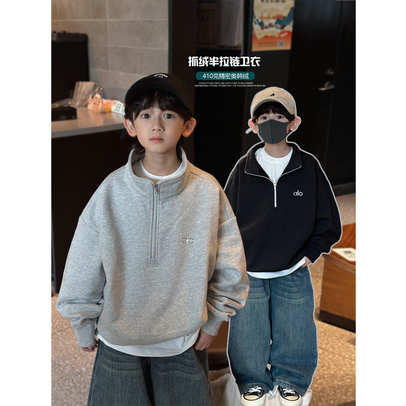 凯文家童装2025年秋季新品男童中大童韩版半拉链加绒儿童套头卫衣