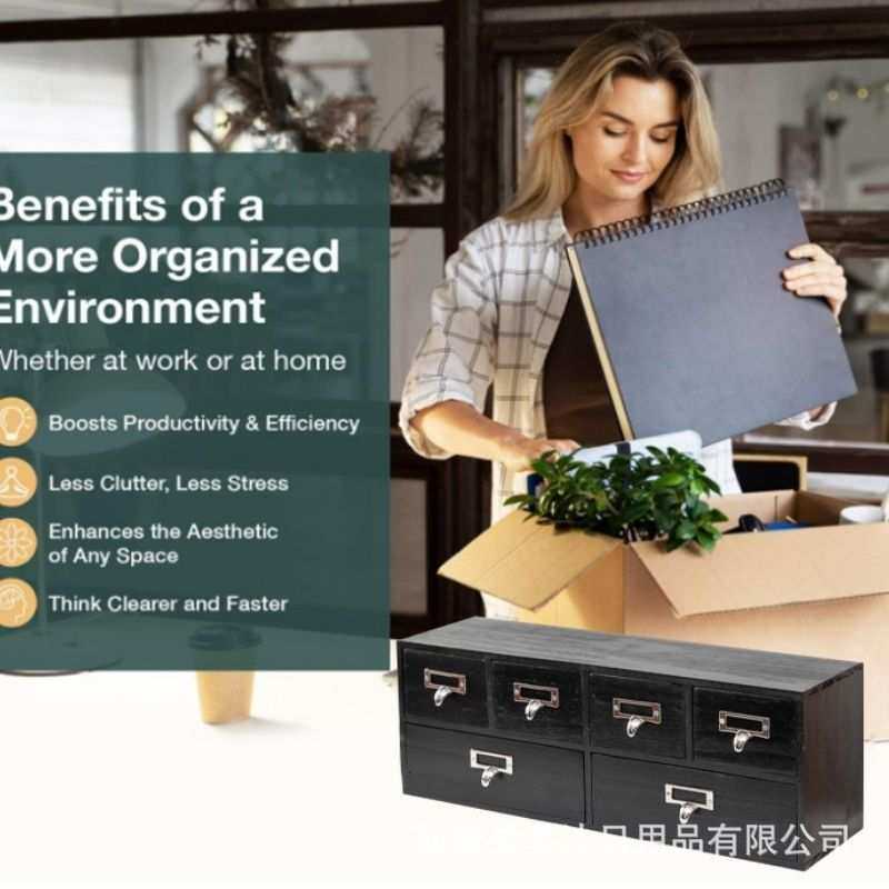 复古实木桌面抽屉式杂物小物件分格收纳盒整理盒储物盒床头收纳柜