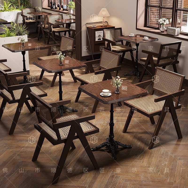 简易复古实木桌椅子多层实木板圆桌方桌休闲靠背椅小户型餐饮咖啡