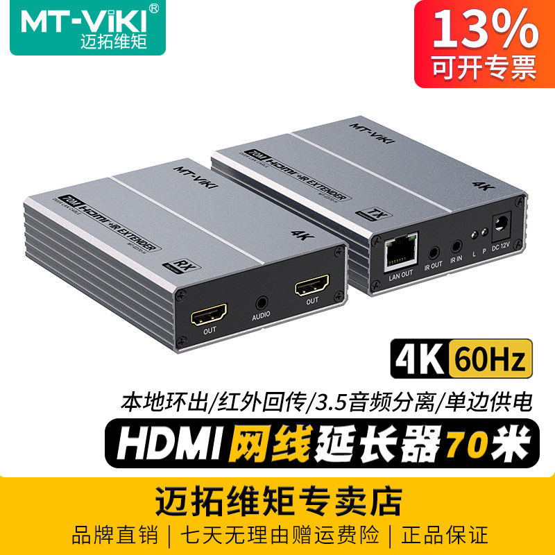 迈拓维矩 MT-ED70-H 4K高清hdmi延长器转网线传输70米网络信号传输器电脑笔记本监控机顶盒电视显示器收发器