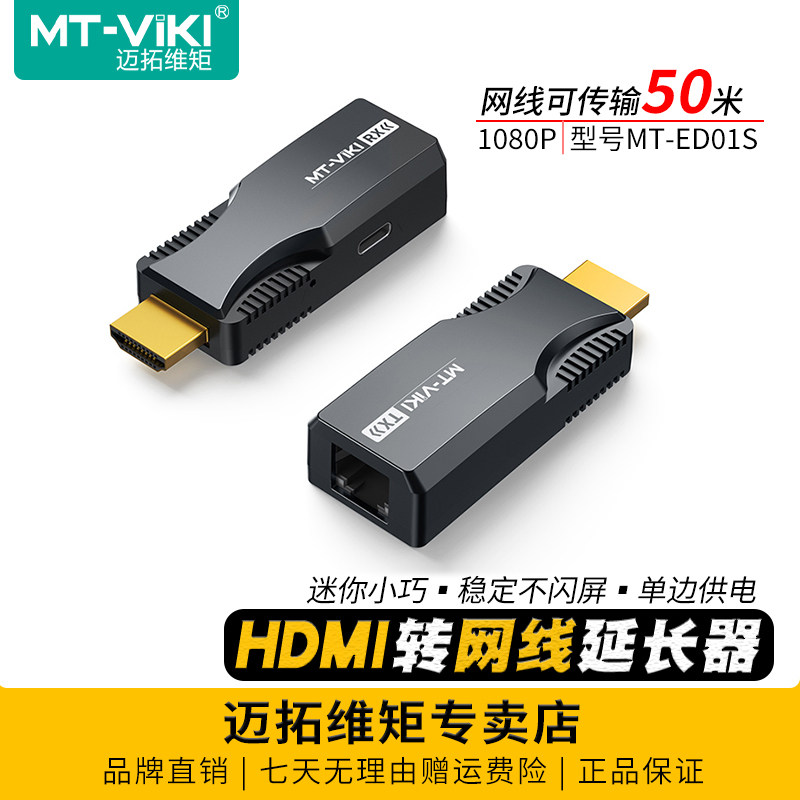 迈拓维矩 MT-ED01S 高清hdmi延长器50米转RJ45网线收发器1080P 电脑监控视频显示器电视投影仪网络传输器
