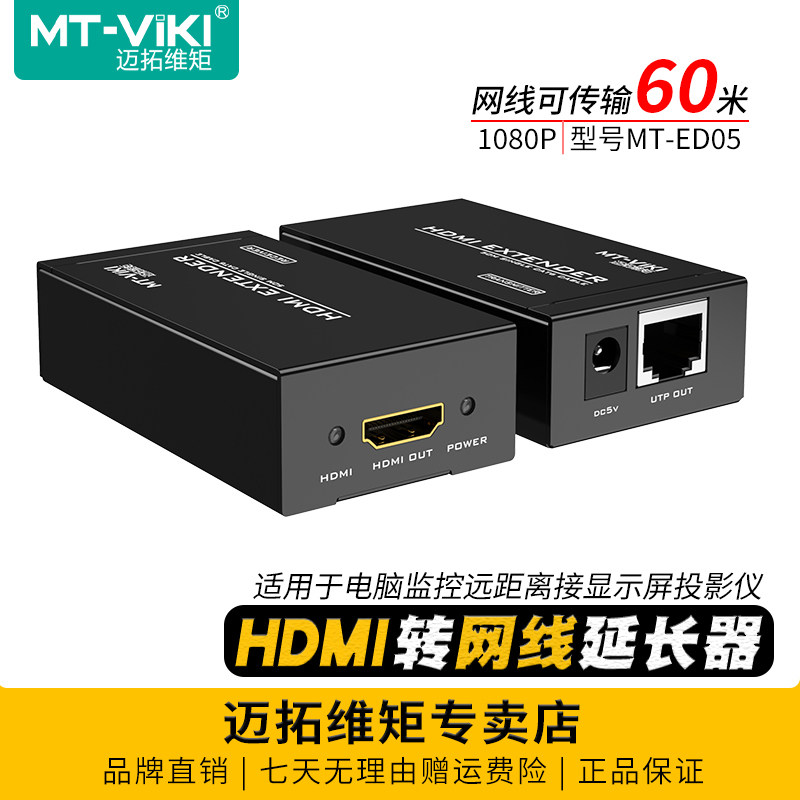 迈拓维矩 MT-ED05 HDMI延长器60米rj45网线网口转HDMI网络传输器电脑显示器监控电视投影仪放大器延长线1080P