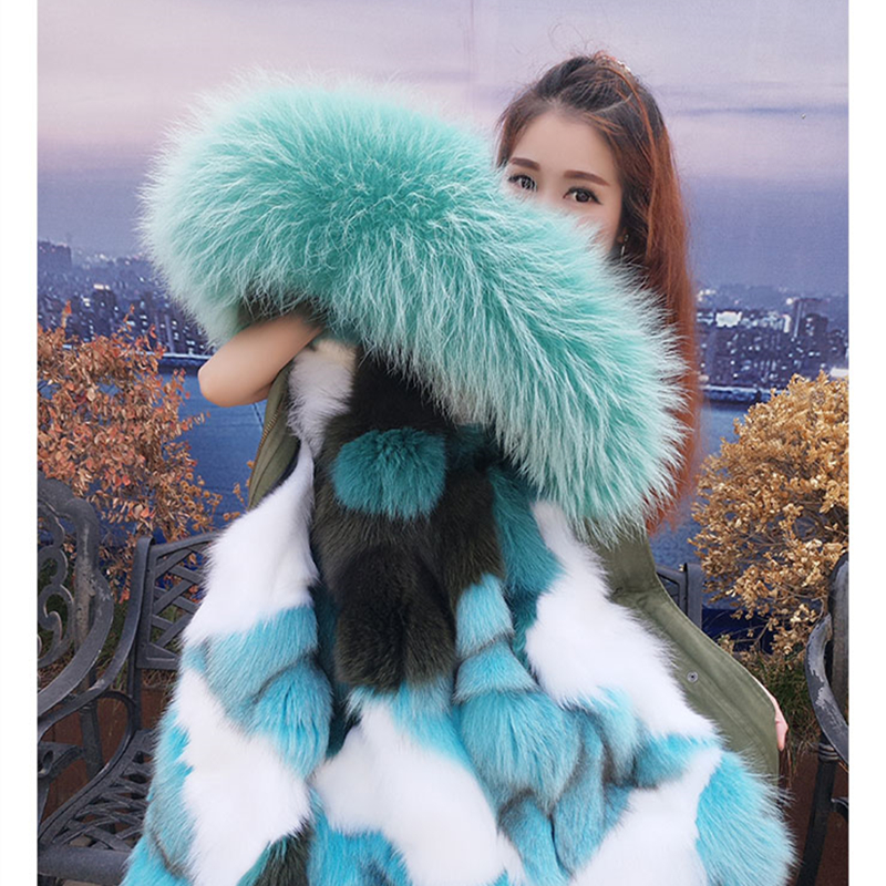 来自星星的你千颂伊同款狐狸毛皮草外套大毛领派克服毛皮大衣女冬
