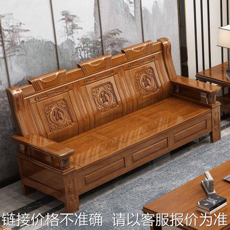 实木沙发全实木组合现代冬夏两用小户型储物木沙发新中式客厅家具