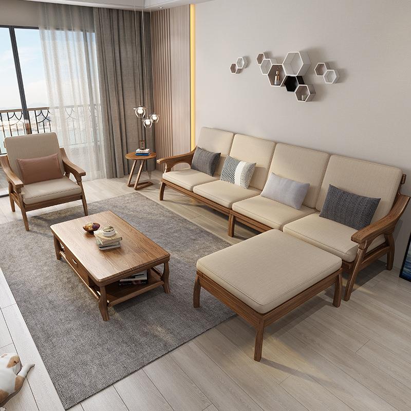 北欧风全实木沙发新中式白蜡木布艺沙发简约大小户型客厅实木家具