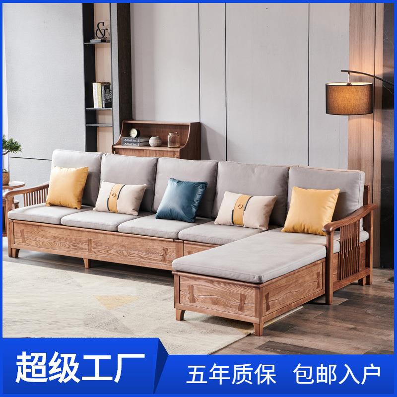 储物冬夏两用实木沙发新中式北欧现代简约白蜡木客厅转角布艺沙发