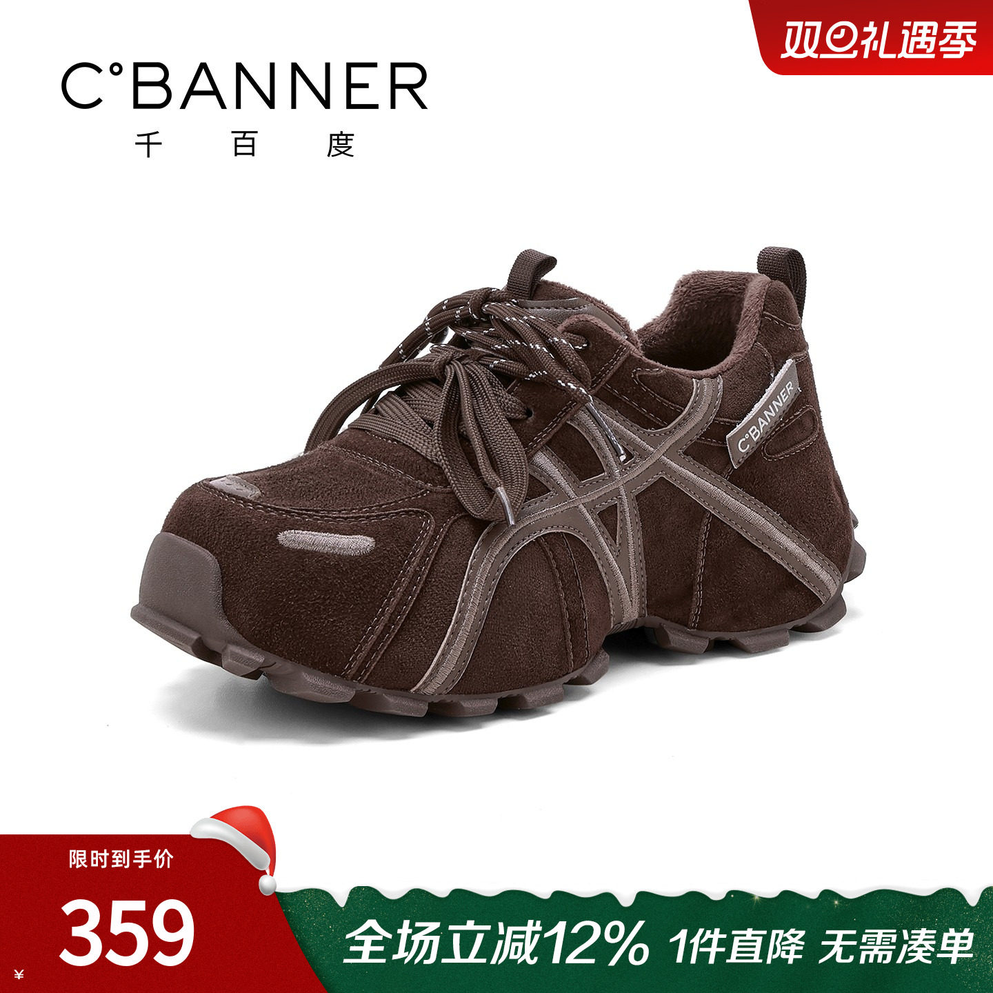 千百度厚底老爹鞋女加绒冬季2025新款百搭小个子休闲运动鞋女棉鞋