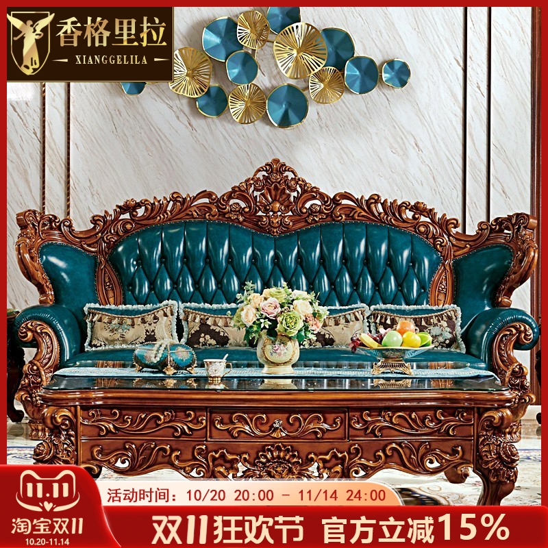 欧式真皮沙发美式别墅实木雕花奢华大小户型古典高档客厅组合沙发