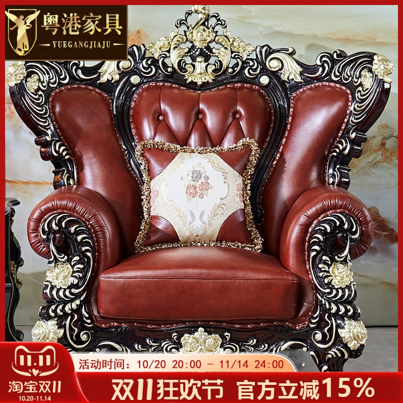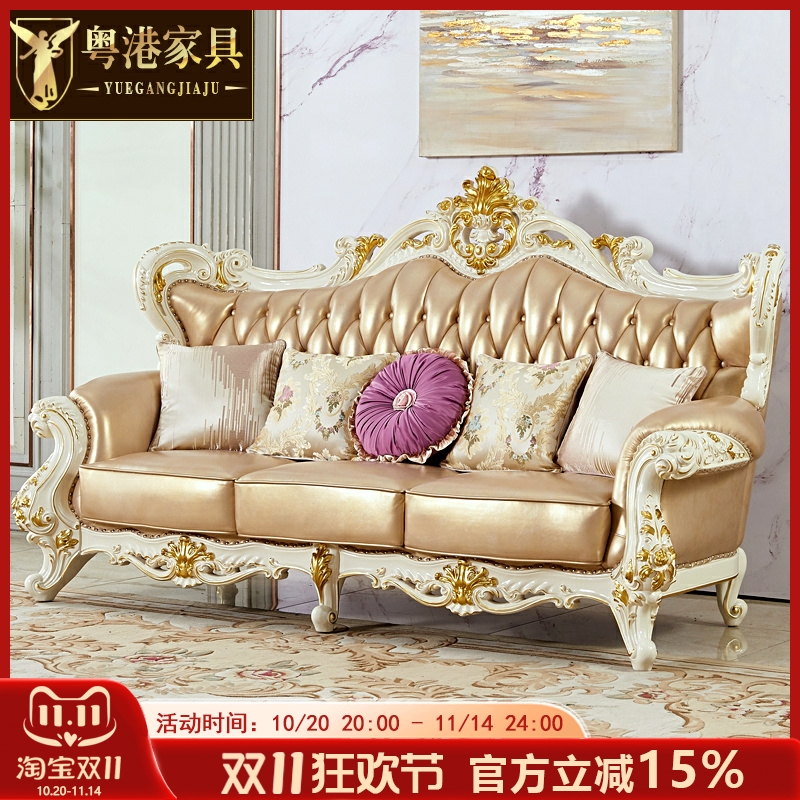 欧式真皮沙发 美式奢华全实木双面雕花别墅描金描银123小户型沙发