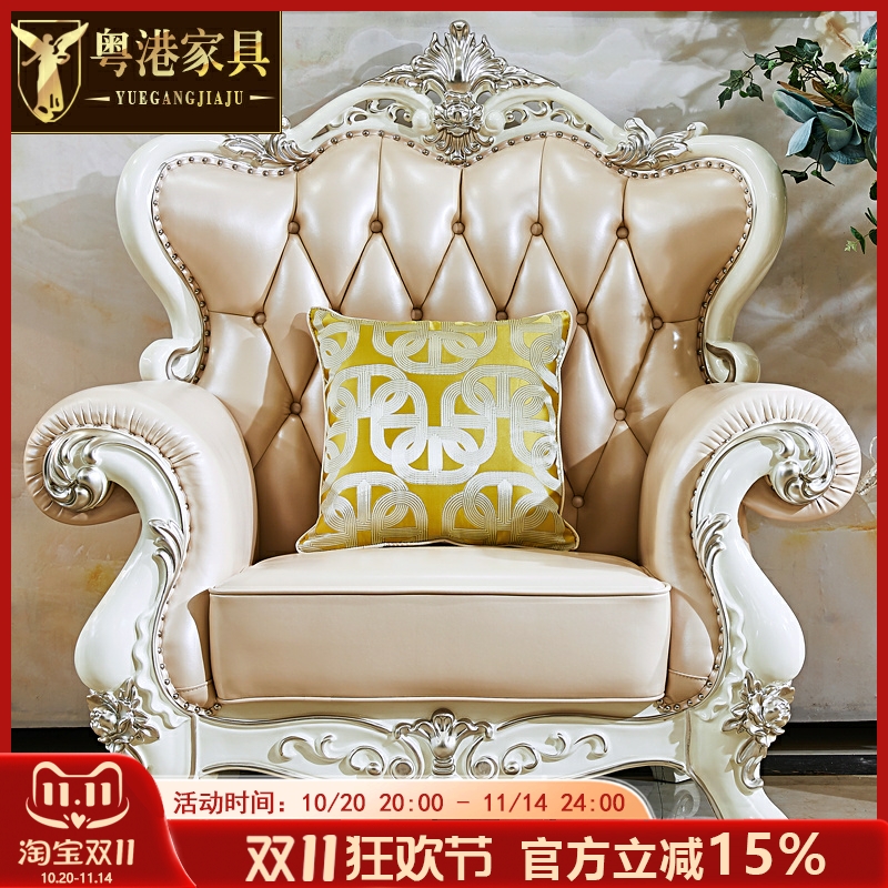 欧式真皮沙发美式别墅奢华客厅实木雕花水性漆1234描金银组合沙发