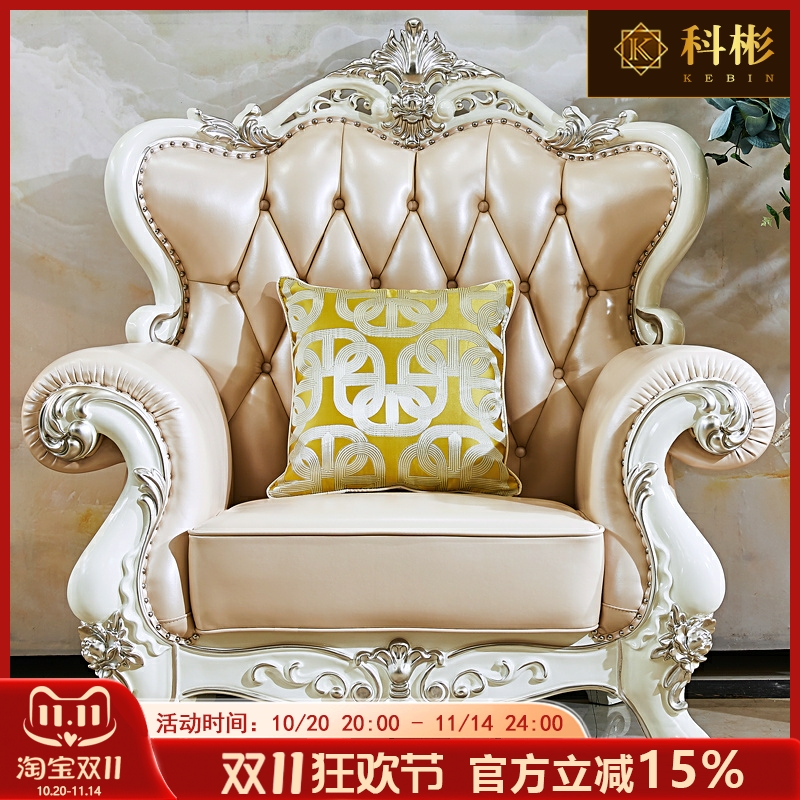 需定制欧式真皮沙发客厅高档全实木双面雕花123贵妃组合小户型白