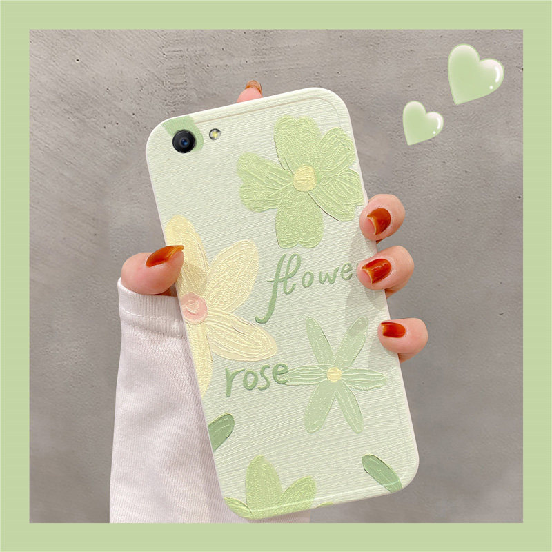 适用于OPPO A59手机壳女个性绿色小花A59S泫雅风a59m名媛防摔全包