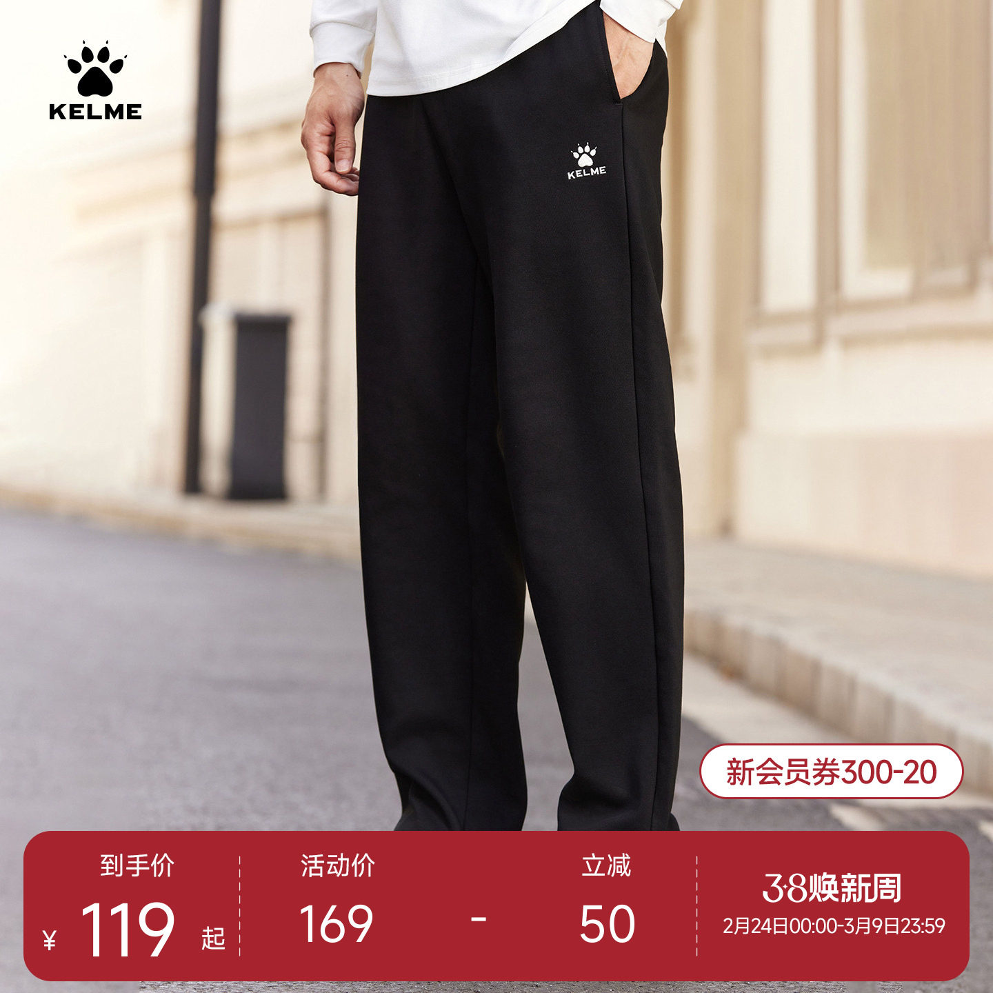 KELME卡尔美休闲运动长裤男春夏宽松学生校服裤束脚加绒直筒卫裤