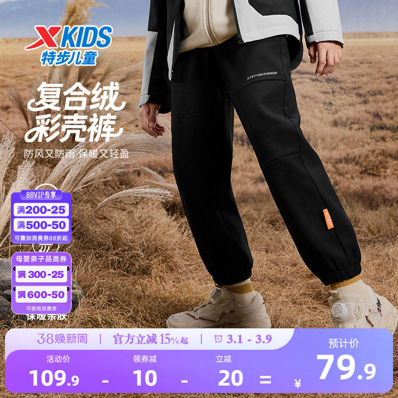 特步童装儿童户外运动裤男童三防保暖长裤青少年春季大童加绒裤子