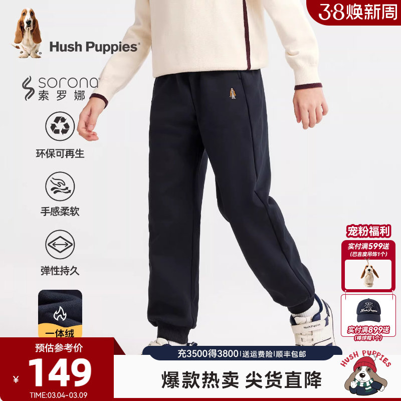 暇步士童装男童加绒运动裤25冬新品大童休闲裤保暖儿童一体绒长裤