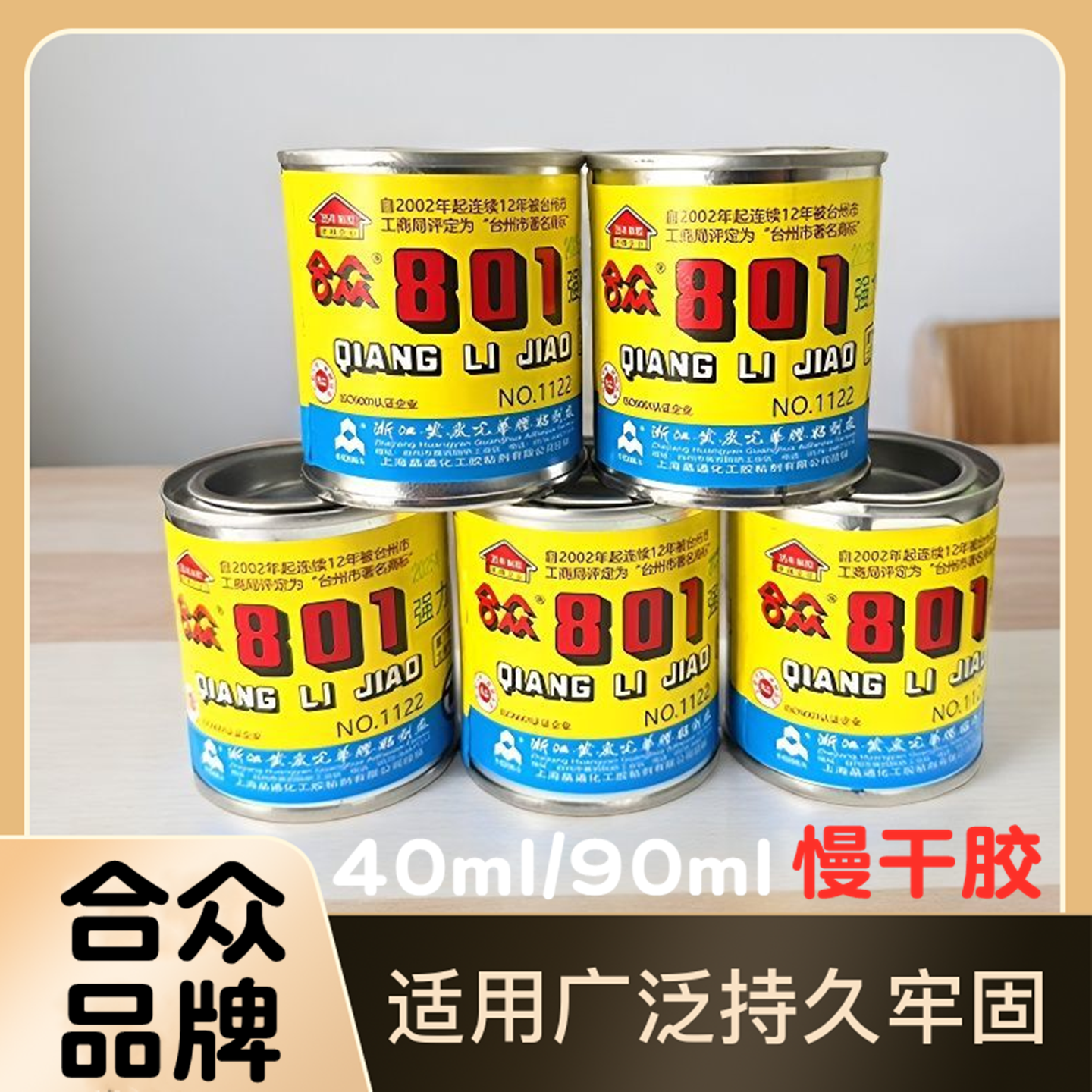 新款正宗合众801氯丁胶强力胶水修鞋皮革木材金属树脂胶鞋黄胶40g