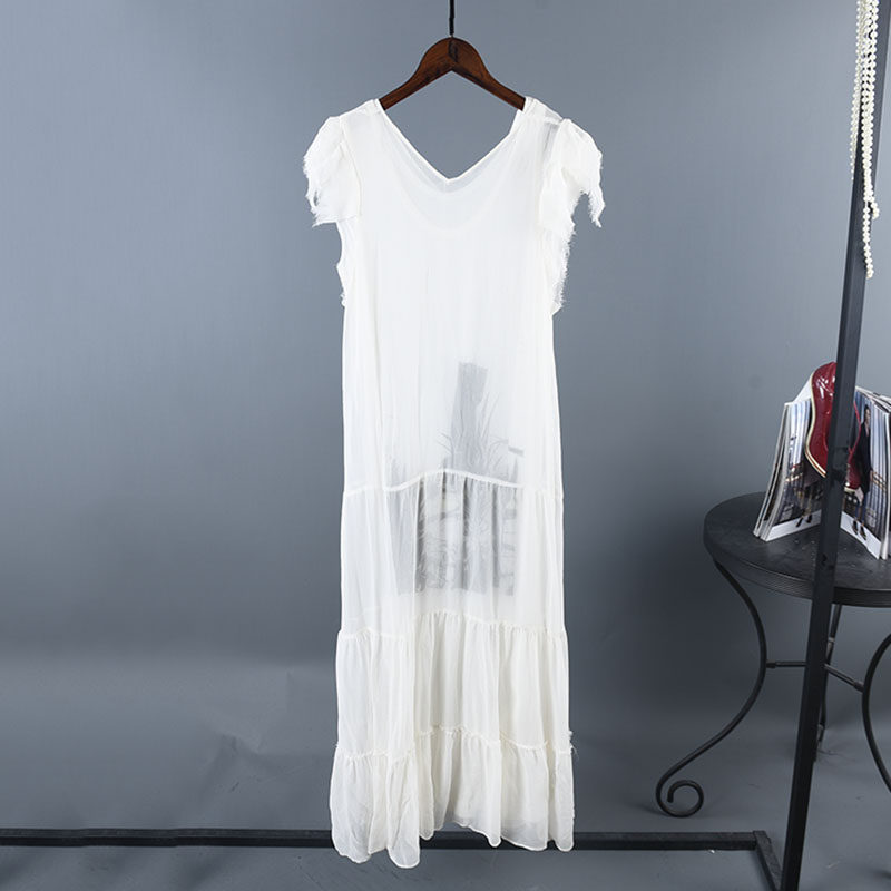 - 无袖长款白色连衣裙