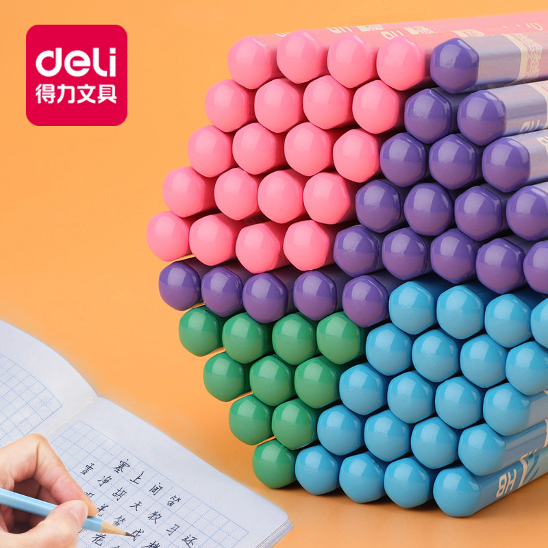 得力撞色铅笔小学生一年级专用安全无毒刻字彩色笔杆2b铅笔hb二年级学生考试专用儿童幼儿铅笔高端学习用品