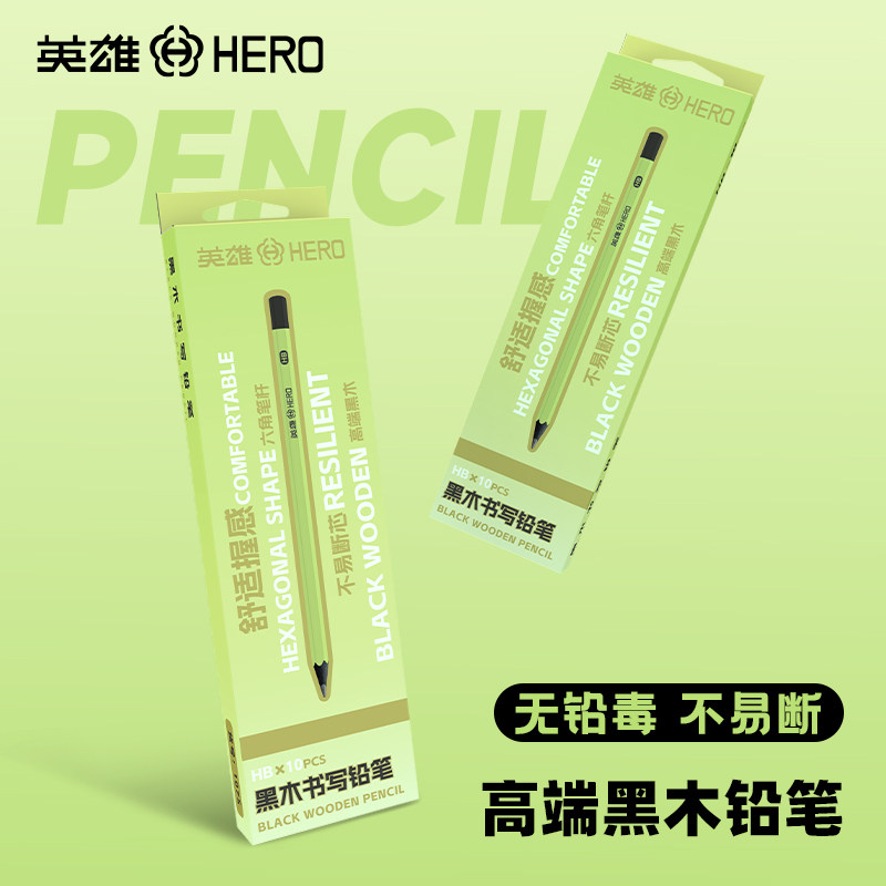 英雄黑木铅笔小绿杆2B铅笔HB小学生专用一二年级初学者儿童铅笔六角杆铅笔10支装考试铅笔耐用