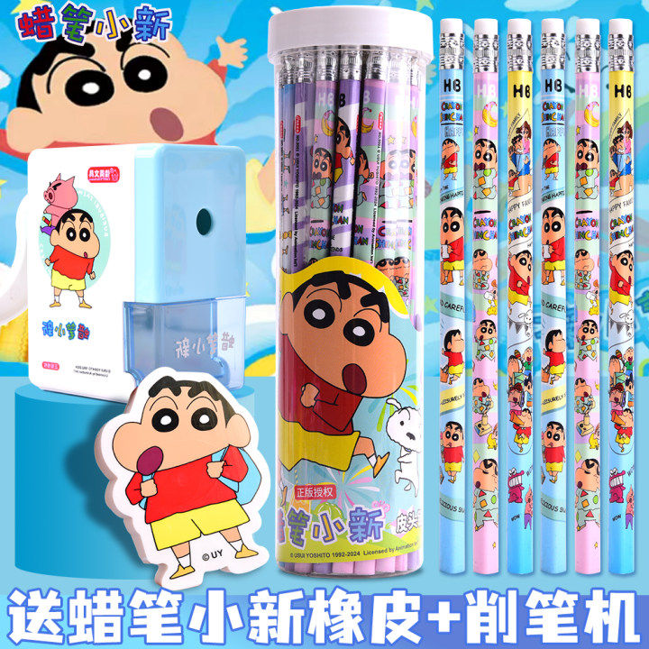 正版蜡笔小新铅笔小学生专用男孩一二年级学生幼儿园初学者hb带橡皮擦卡通儿童铅笔男生女孩学习文具奖品批发