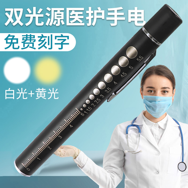 医护瞳孔笔口腔检查灯护士白黄光可充电小手电筒多功能双光源携带