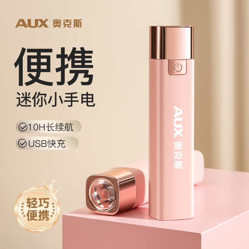 奥克斯便携式迷你小手电筒可充电超亮长续航儿童学生耐用家用应急