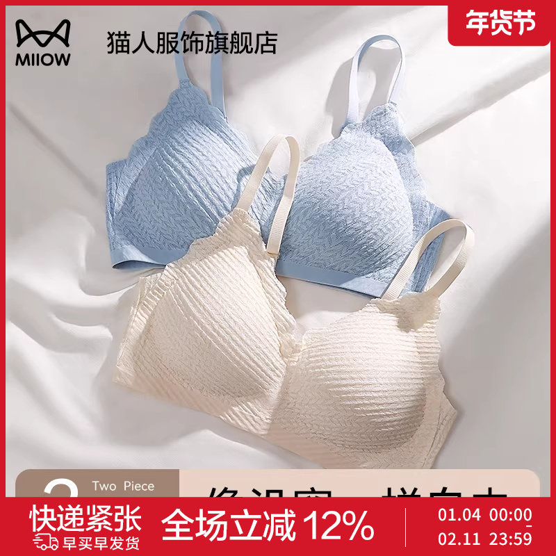 猫人内衣女小胸聚拢收副乳防下垂无钢圈舒适无痕女士文胸罩软支撑