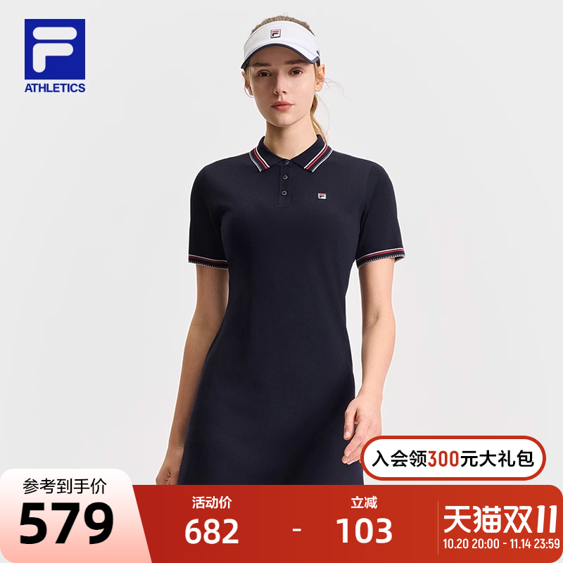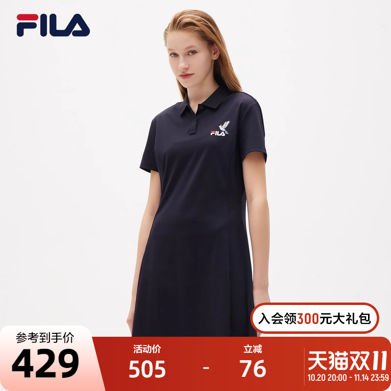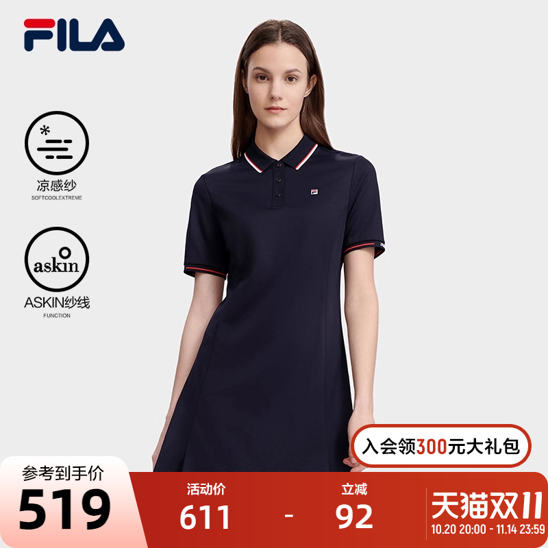FILA 斐乐官方女子连衣裙时尚休闲优雅潮流翻领短袖POLO连身裙