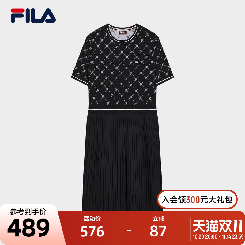 FILA 斐乐官方女子连衣裙2024秋新款时尚休闲基础拼接连身百褶裙