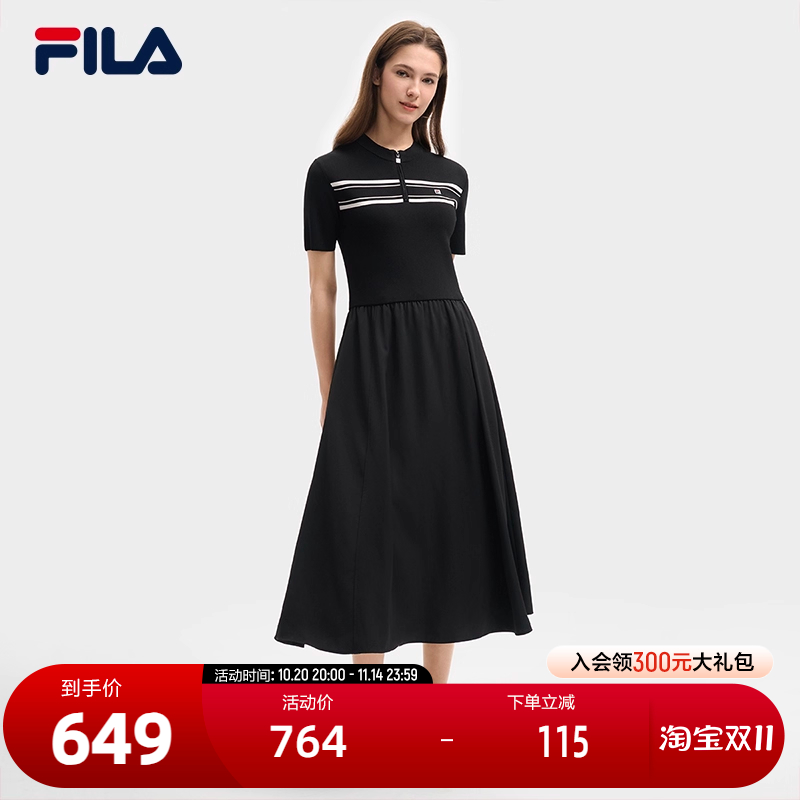 FILA 斐乐官方女子连衣裙2024秋新款网球运动基础拼色半拉链裙子