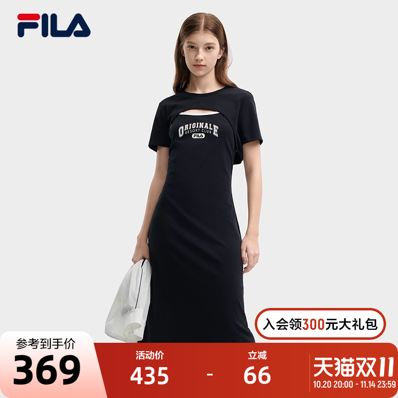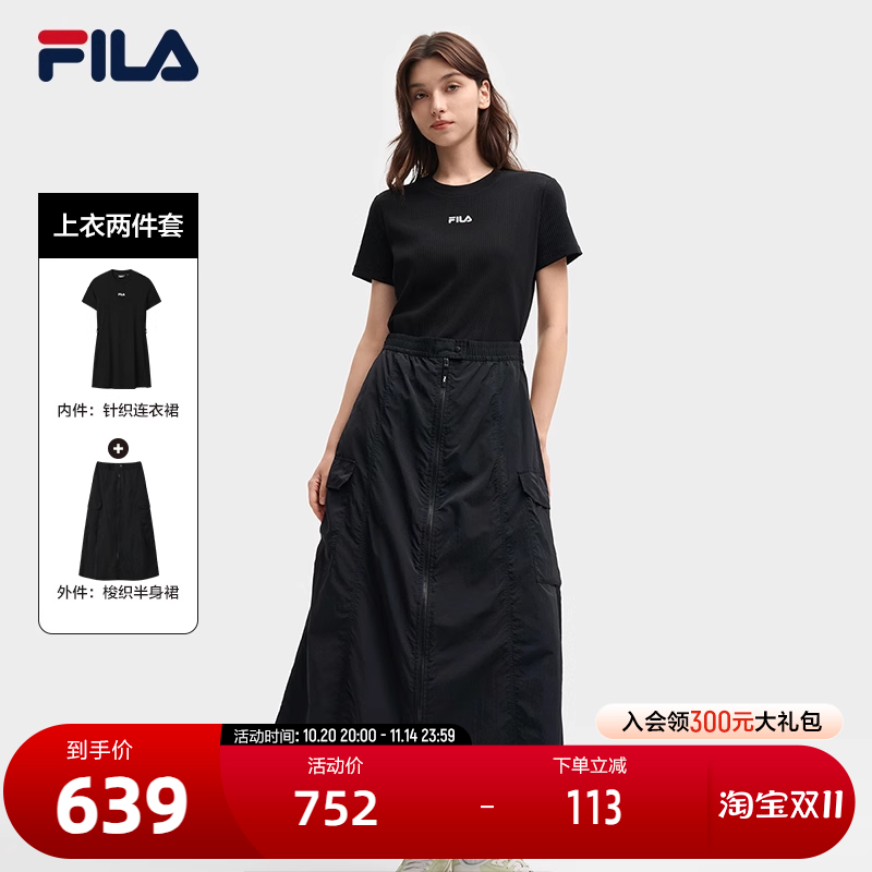 FILA 斐乐官方女子连衣裙两件套2025秋新款时尚休闲简约基础裙子