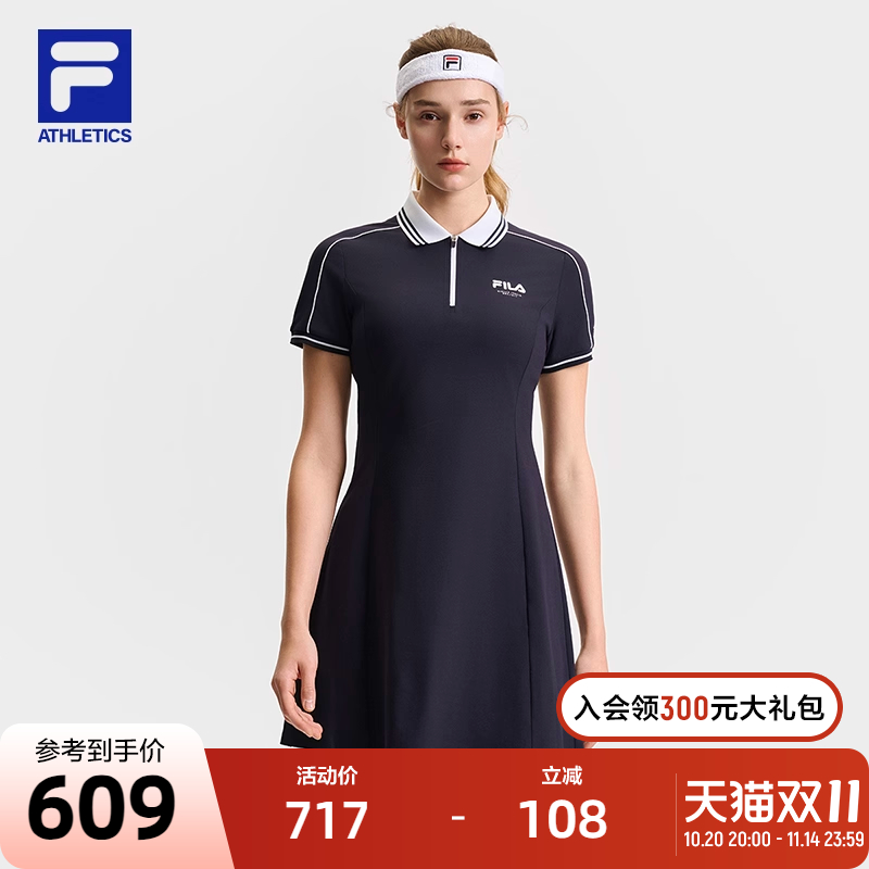 FILA 斐乐官方女子连衣裙2025秋季新款高尔夫运动基础防晒POLO裙