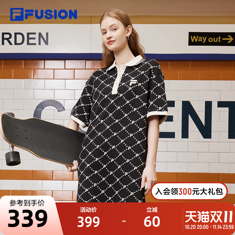 FILA FUSION斐乐潮牌女子连衣裙2023夏时尚宽松简约POLO裙子