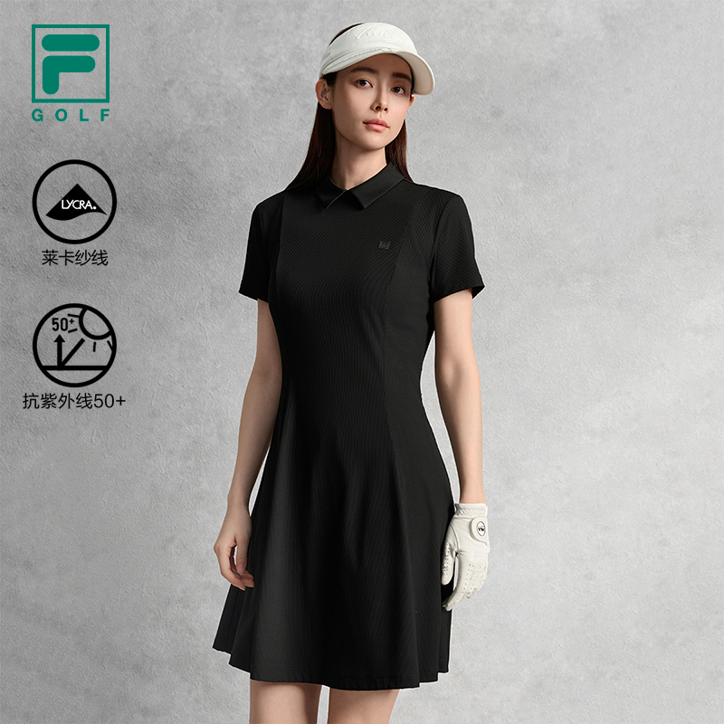 FILA 斐乐官方女子连衣裙2025夏季新款高尔夫运动防晒修身翻领裙
