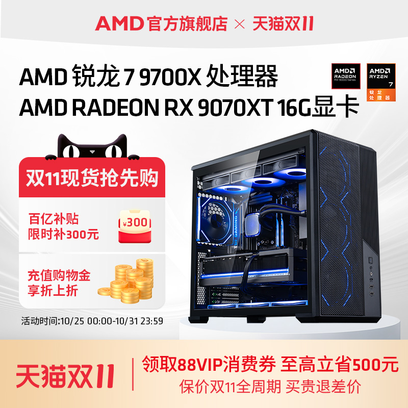 AMD处理器电脑主机锐龙7 9700X/RX9060XT/RX9070XT/RTX5060TI/5070TI 16G电竞DIY组装机吃鸡台式电脑套件