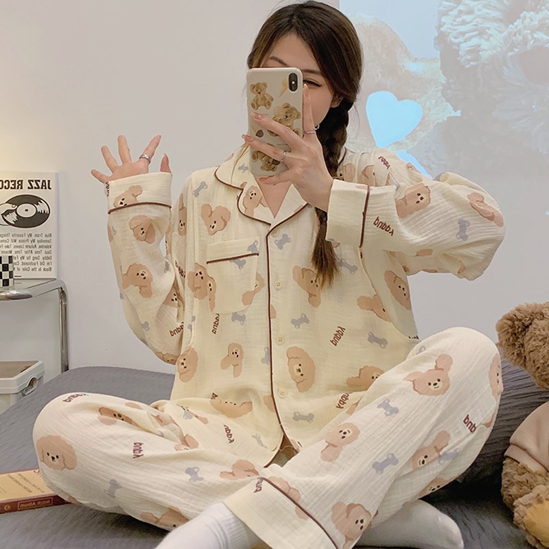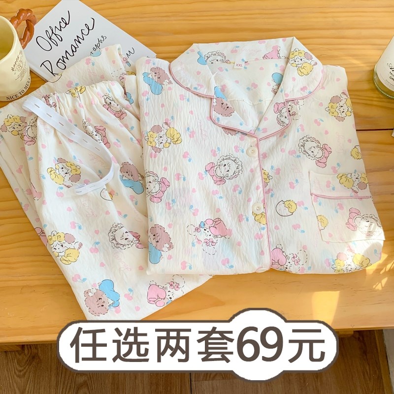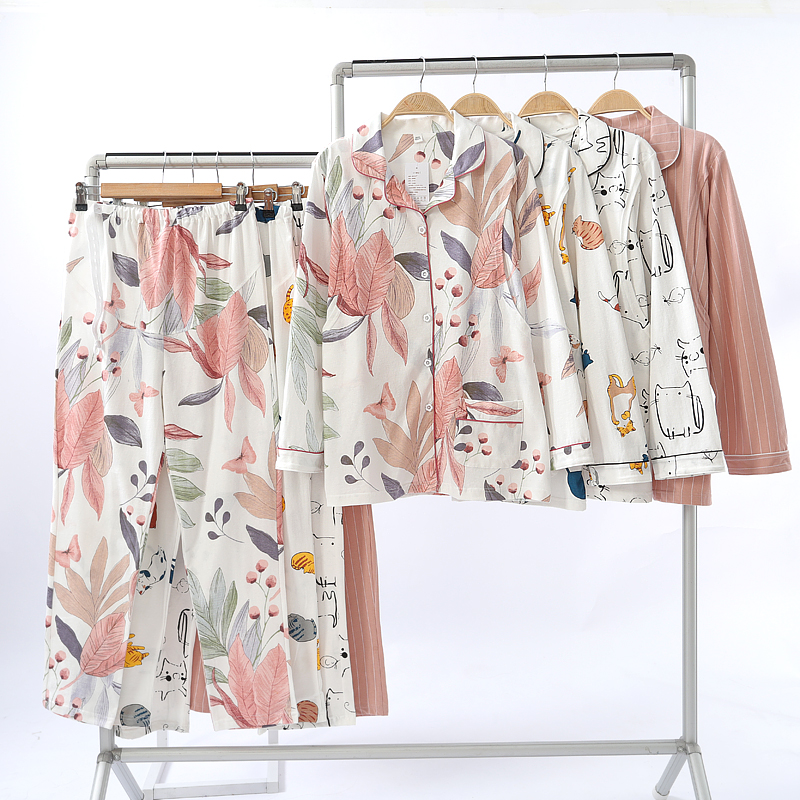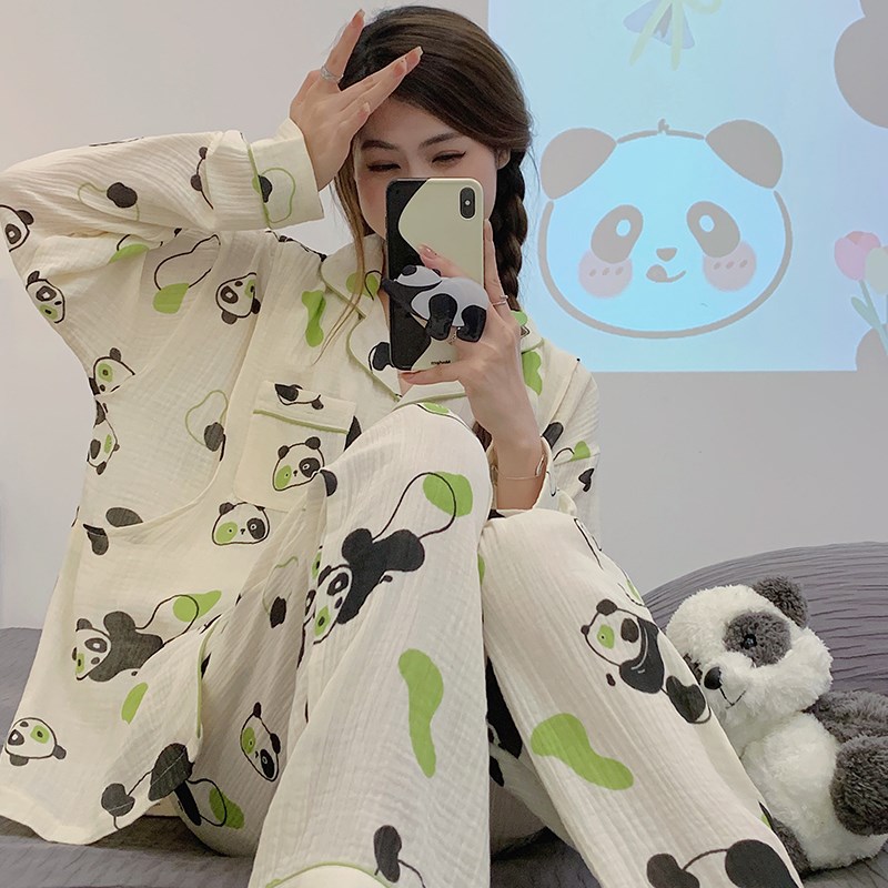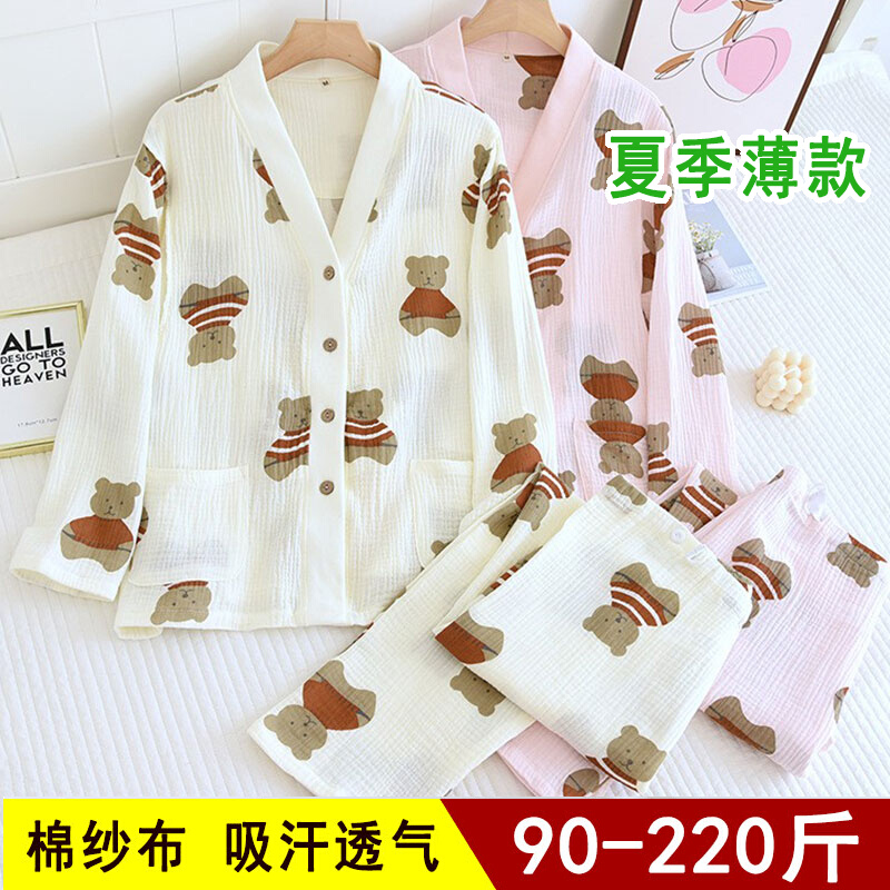 春秋棉纱孕妇睡衣春夏大码200斤产后月子服哺乳纯棉纱布家居服女