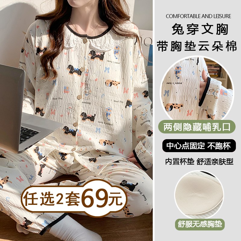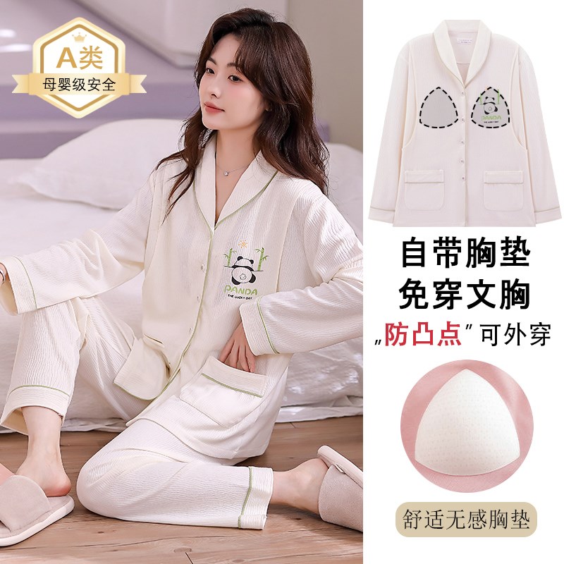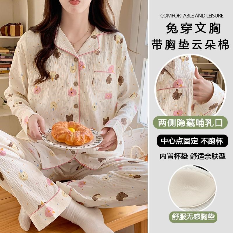 带胸垫月子服春秋A类纯棉产后产妇哺乳孕妇睡衣春夏怀孕期可外穿