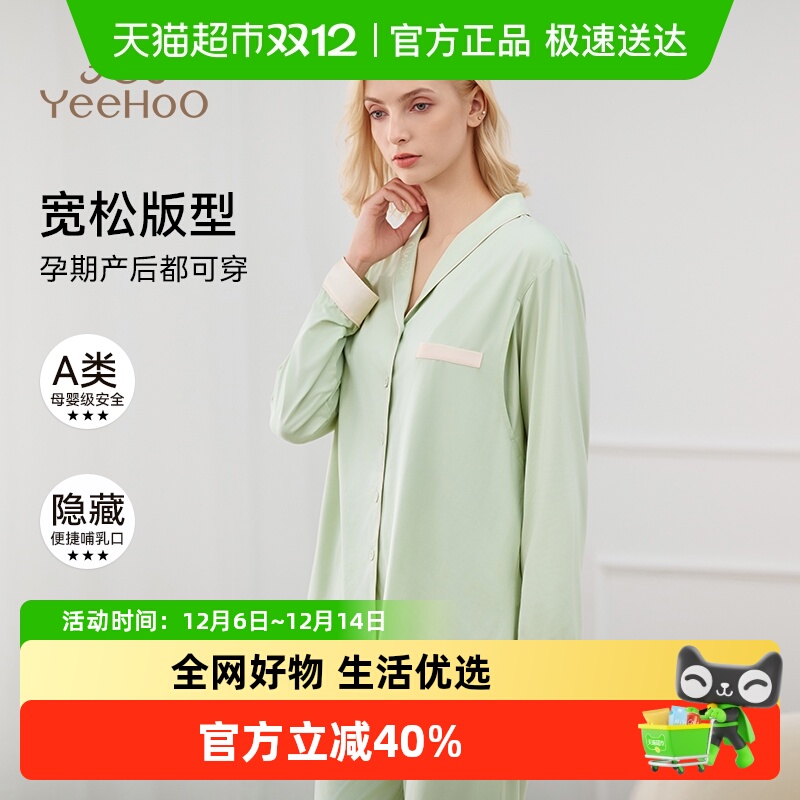 YEEHOO/英氏孕妇睡衣春夏新款长袖长裤家居服套装哺乳大码月子服