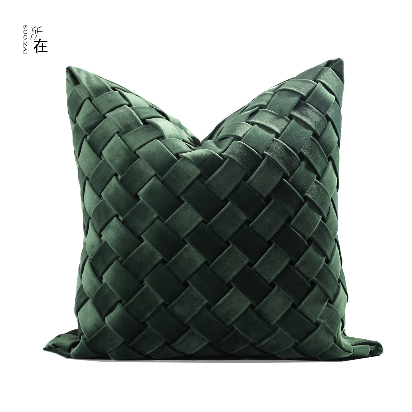 现代简约墨绿色编织格子抱枕轻奢高档酒店样板间沙发客厅靠垫腰枕