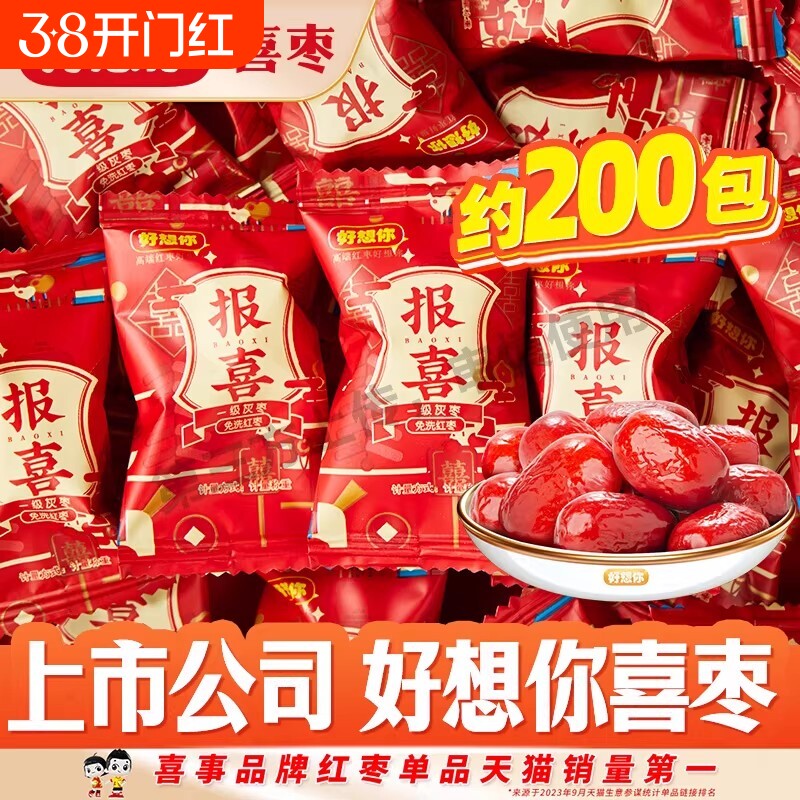 【好想你喜礼枣】报喜枣早生贵子枣夹花生核桃阿胶蜜枣子喜糖年货