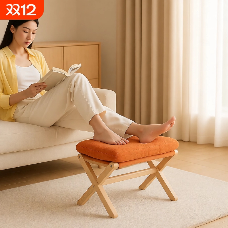 脚踏沙发搁脚凳实木折叠换鞋凳踩脚凳桌下垫脚办公室放脚神器脚蹬