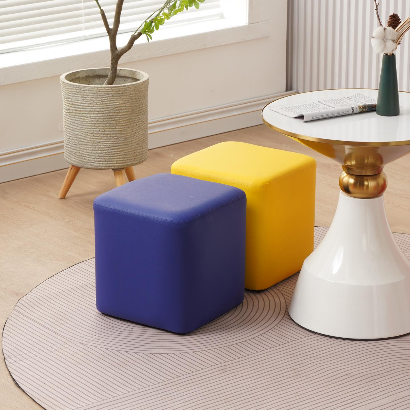 复古换鞋凳入户凳子坐墩沙发脚踏脚凳现代简约矮凳魔方凳中古凳子
