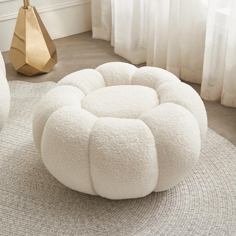 南瓜沙发矮凳脚凳沙发凳羊羔绒儿童简约客厅轻奢卧室单人小圆凳子