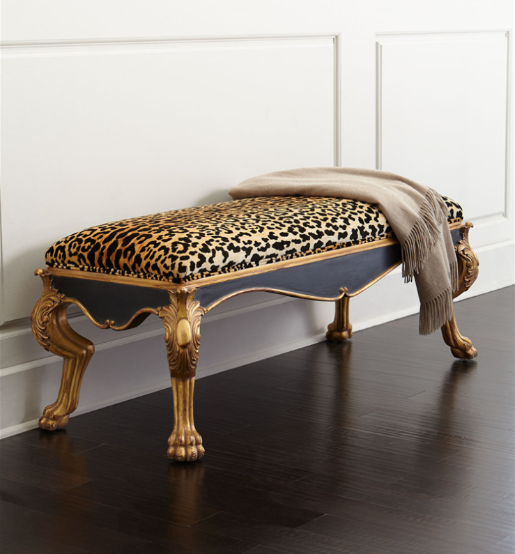 美式新古典实木雕花豹纹床尾凳换鞋凳家用欧式雕刻老虎脚凳沙发凳