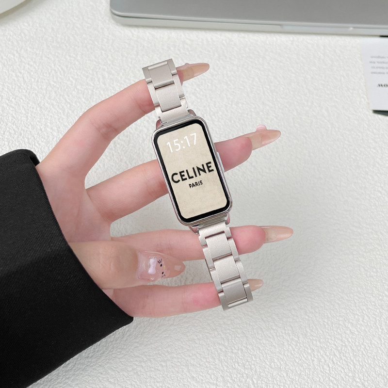 北想适用于华为手环10/9/8表带夏天新款三珠不锈钢华为band7智能运动6pro荣耀手环9替换腕带高级时尚表壳配件