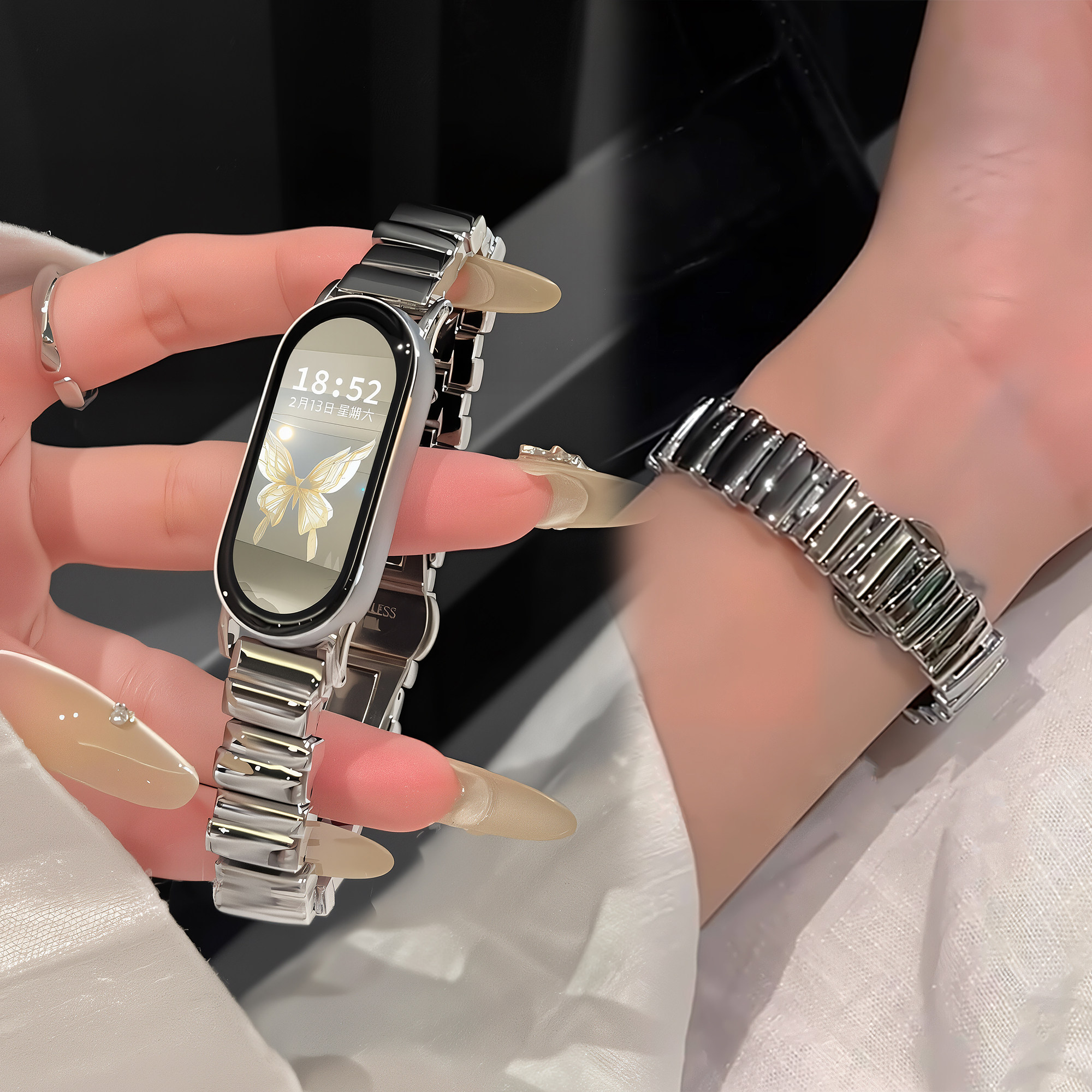 uhada适用小米手环10表带创意新款不规则金属千金感小米手环9表带智能小米手环8/7/6/5NFC时尚腕带女生小香风
